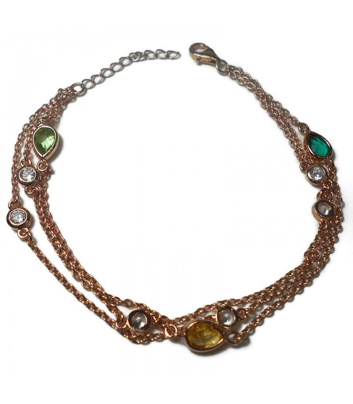 Βραχιόλι με κρυσταλλάκια σε κίτρινο, πράσινο, λαχανί από ροζ επιχρυσωμένο ασήμι 925, με λευκές πέτρες ζιργκόν.