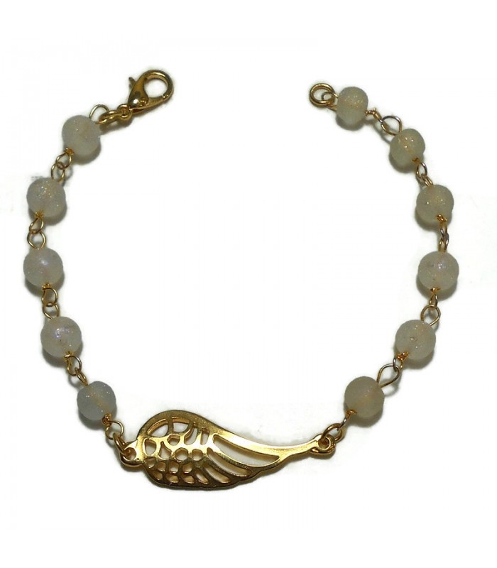 Βραχιόλι φτερό αγγέλου από ορείχαλκο με ροζάριο