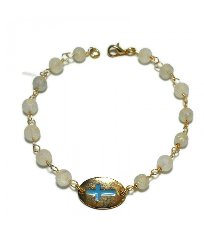 Βραχιόλι σταυρός με σμάλτο από ορείχαλκο σε αλυσιδάκι ροζάριο από ημιπολύτιμες πέτρες.