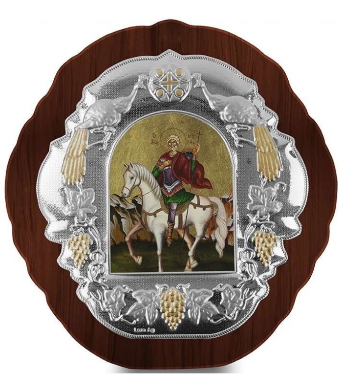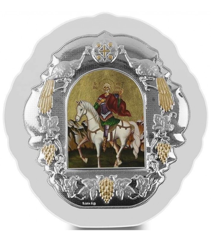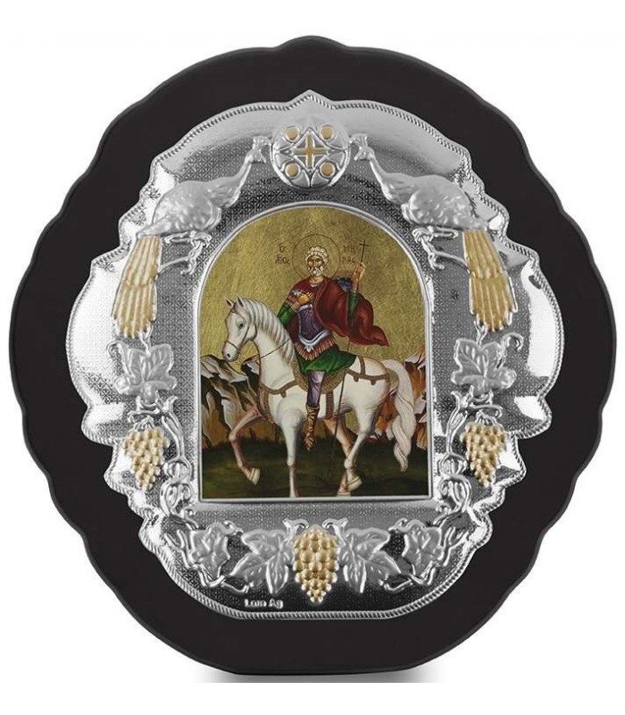 Ασημένια Εικόνα Άγιος Μηνάς Μεταξοτυπία 421-G
