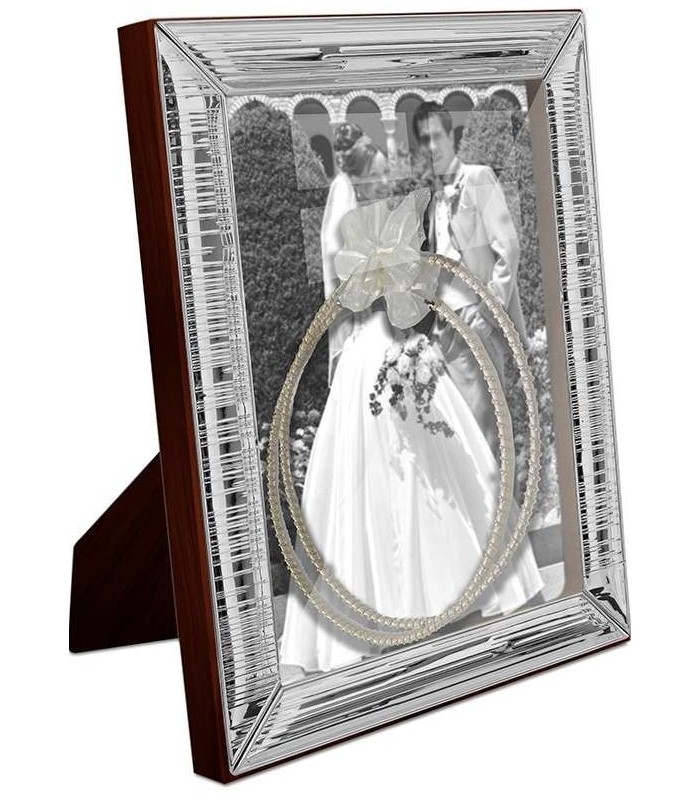 Στεφανοθήκη κορνίζα κατασκευασμένη με επίστρωση άργυρου 950° επί συνθετικού η μεταλλικού υποστρώματος με εσωτερική διάσταση φωτογραφίας 18x24 από την εταιρεία Prime Silver. Έχει υποστεί ειδική επεξεργασία για να παραμένει αναλλοίωτη στο πέρασμα του χρόνου.