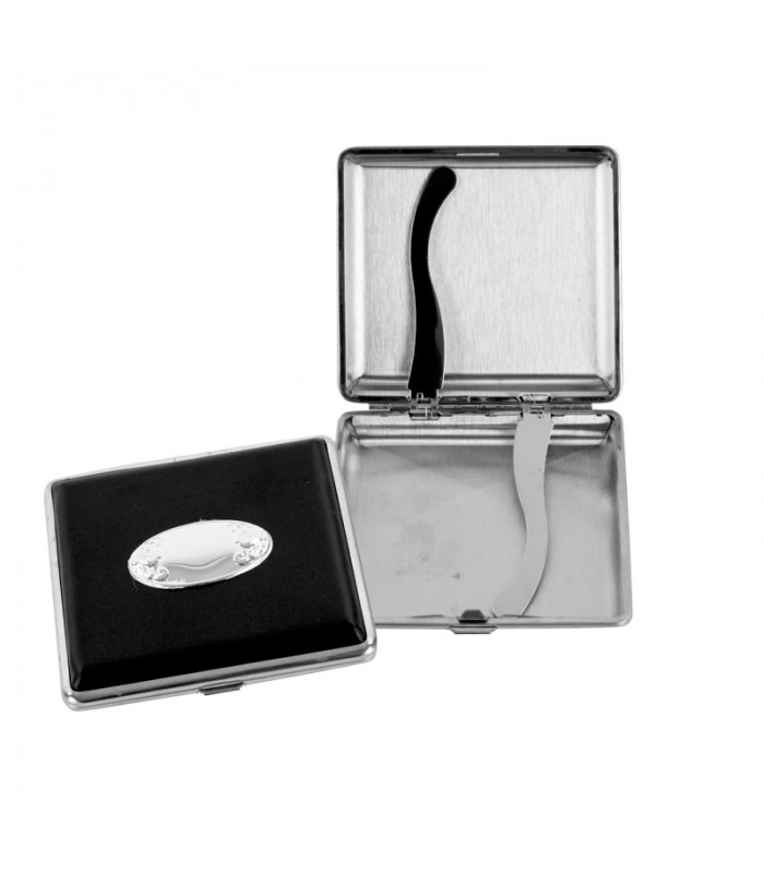 Ταμπακιέρα μαύρη με ασημένιο πλακάκι