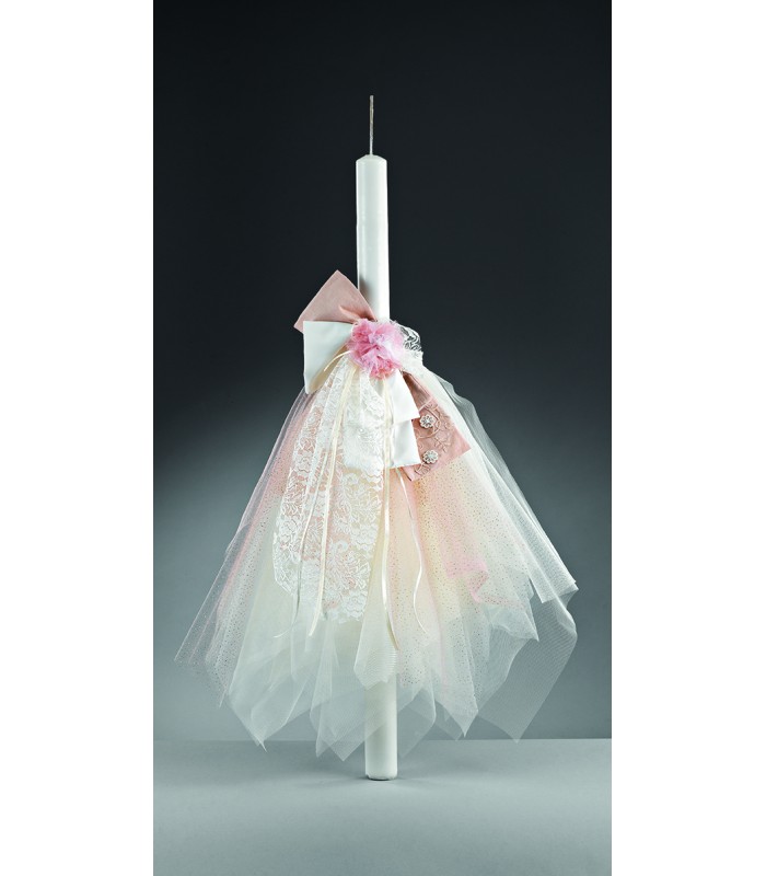 Λαμπάδα βάφτισης λουλούδι για κορίτσι, με δαντέλα και τούλι.
