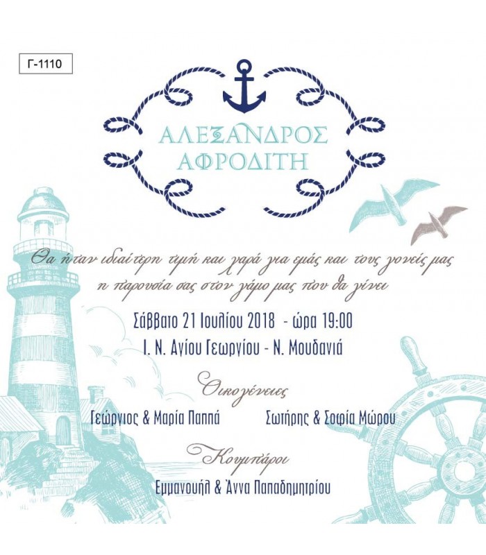 Προσκλητήριο γάμου με θέμα τη θάλασσα Γ1110