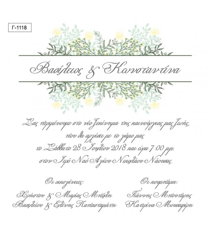 Προσκλητήριο γάμου, η κάρτα του προσκλητηρίου είναι τυπωμένη σε υπόλευκο ματ χαρτί 260γρ. Το προσκλητήριο διαθέτει φάκελο διάστασης 15X15cm σε χαρτί της επιλογής σας από τους αναγραφόμενους κωδικούς της εικόνας.