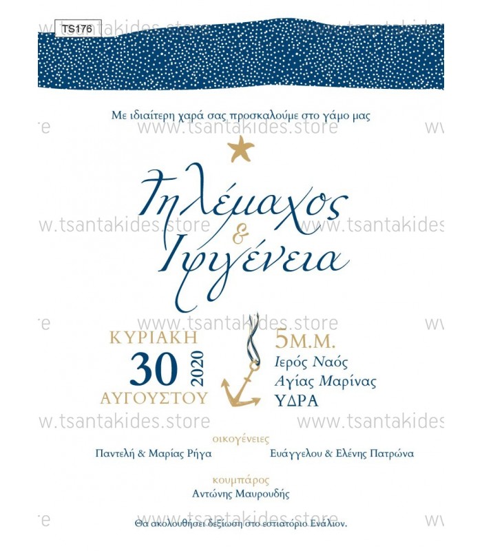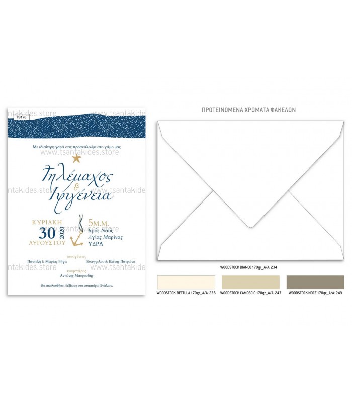 Προσκλητήριο γάμου, η κάρτα του προσκλητηρίου είναι τυπωμένη σε λευκό ματ χαρτί 250γρ. Το προσκλητήριο διαθέτει φάκελο διάστασης 19,5x14,5cm σε χρώμα της επιλογής σας