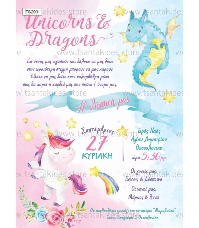 Προσκλητήριο για δίδυμα μονόκερος και δράκος TS203