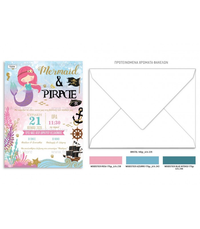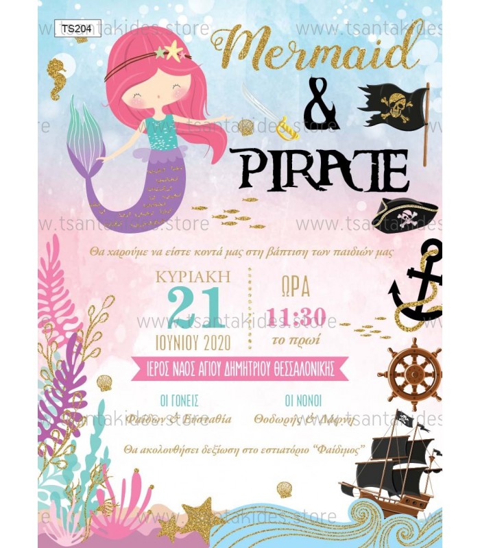 Προσκλητήριο για δίδυμα γοργόνα και πειρατής TS204