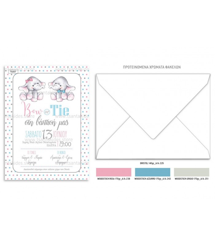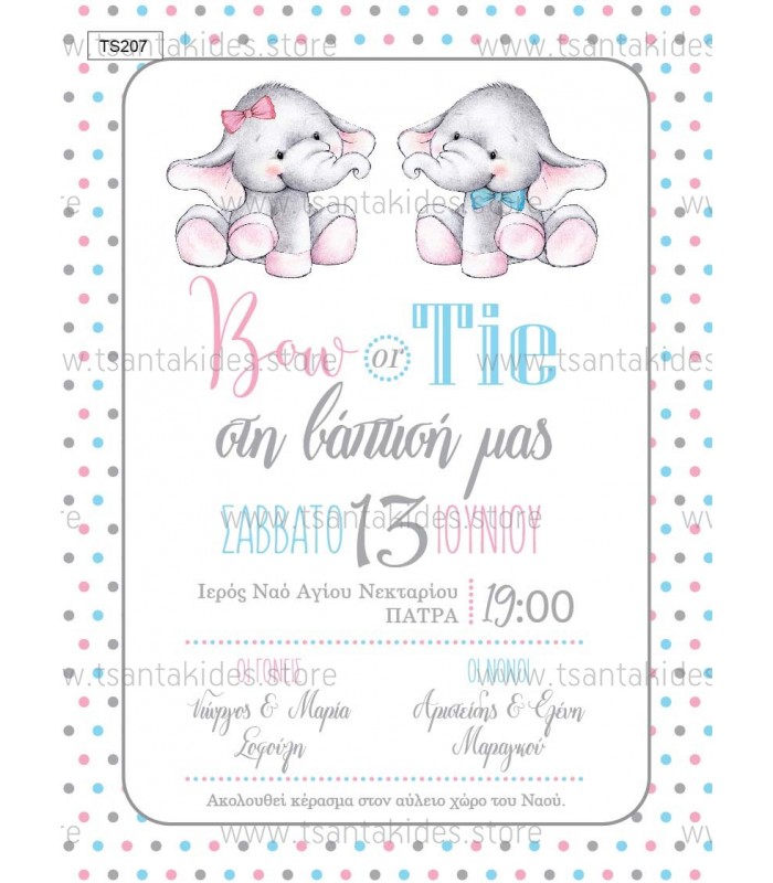 Προσκλητήριο για δίδυμα ελεφαντάκια TS207