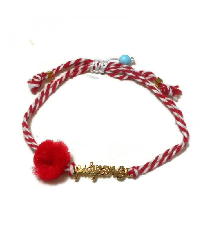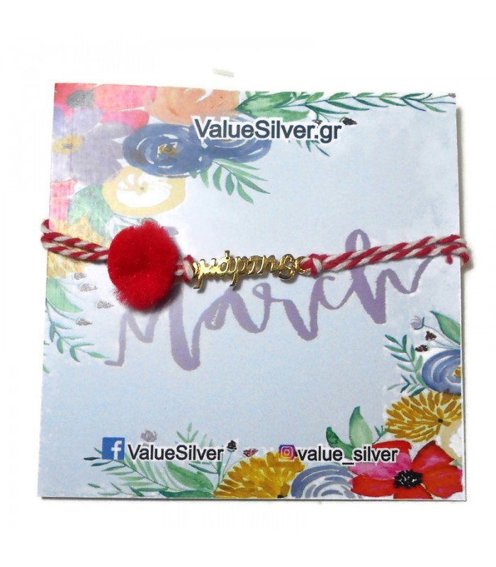 Μαρτάκι βραχιόλι με επίχρυσο μάρτης και κόκκινο πον πον.