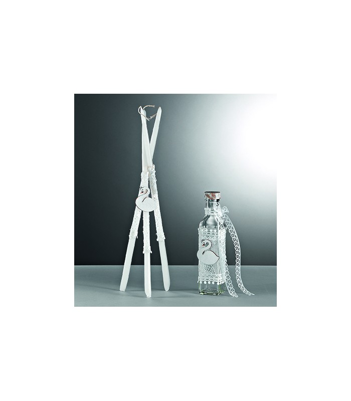 Λαδοσέτ για κορίτσι, με κύκνο με δαντέλα. Το σετ περιλαμβάνει 3 κεριά, ένα πουγκί με σαπούνι και ένα γυάλινο μπουκαλάκι για το λάδι.