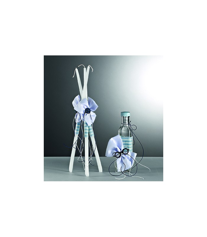 Λαδοσέτ με γυαλιά για αγόρι. Το σετ περιλαμβάνει 3 κεριά, ένα πουγκί με σαπούνι και ένα γυάλινο μπουκαλάκι για το λάδι.