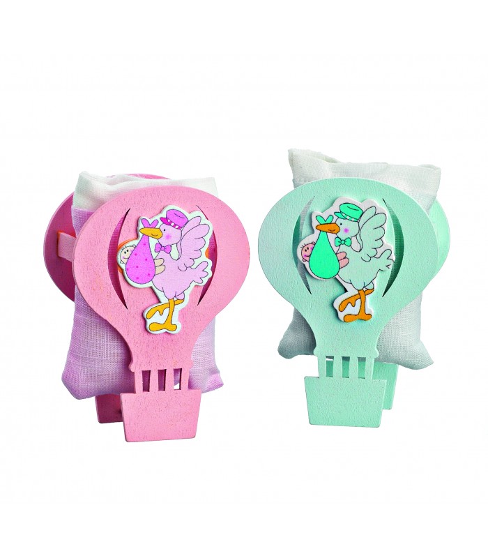 Μπομπονιέρα ξύλινο αερόστατο με πουγκί MPOG2525