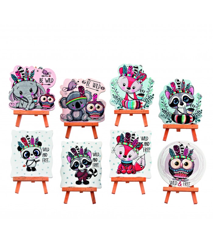 Μπομπονιέρα για βάφτιση ξύλινα εκτυπωμένα ζωάκια σε καδράκι πάνω σε καβαλέτο. Η μπομπονιέρα διατίθεται στο σχέδιο της επιλογής σας. Η μπομπονιέρα περιλαμβάνει 3 κουφέτα αμυγδάλου με γεύση Χατζηγιαννάκη κορδέλα και τούλι. Διάσταση 8Χ11cm.
