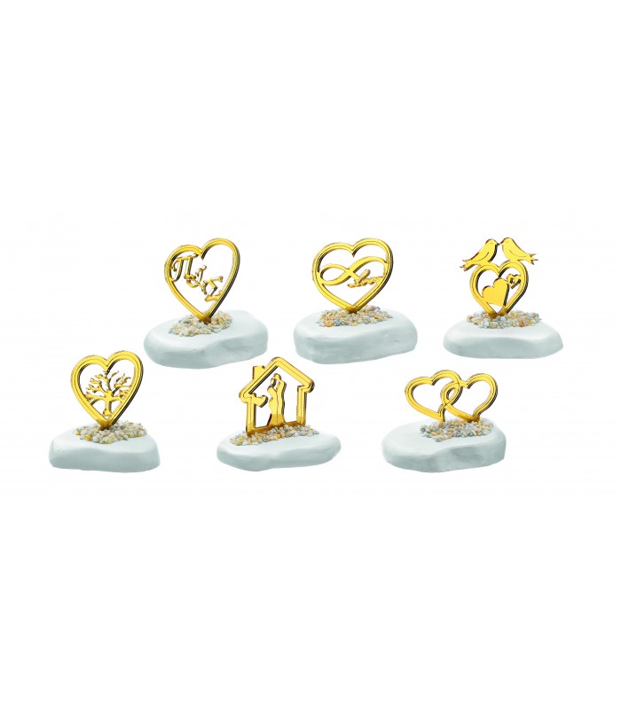 Μπομπονιέρα για γάμο, επιτραπέζιο σε κεραμική πέτρα με plexiglass στοιχείο σε διάφορα σχέδια της επιλογής σας (καρδούλες, μονογράμματα, δέντρο της ζωής, περιστέρια, σπίτι, άπειρο). Η μπομπονιέρα περιλαμβάνει 3 κουφέτα αμυγδάλου Χατζηγιαννάκη και τούλι.