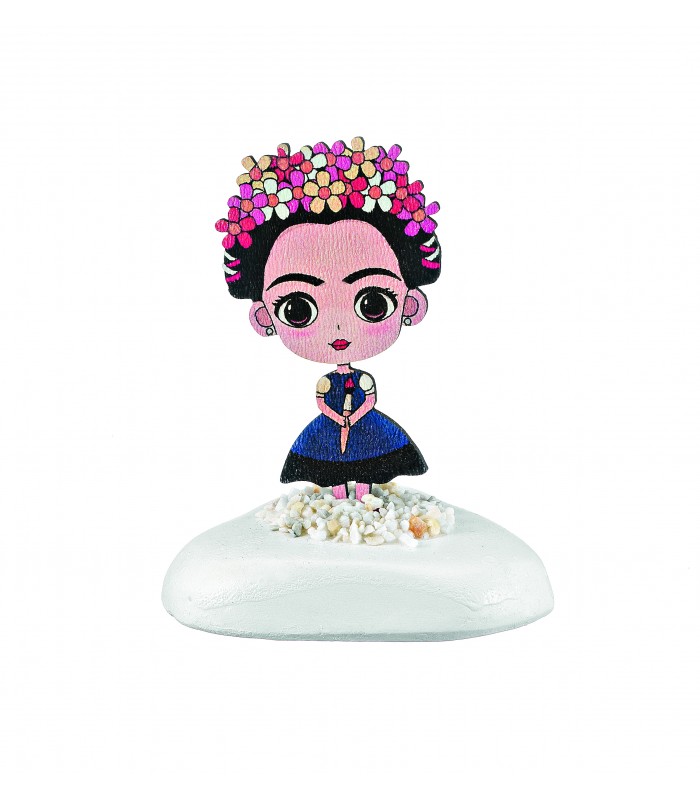 Μπομπονιέρα για βάφτιση, επιτραπέζιο ξύλινο κοριτσάκι με στεφάνι με λουλούδια σε κεραμική πέτρα διακοσμημένο με κορδέλα. Η μπομπονιέρα περιλαμβάνει 5 κουφέτα αμυγδάλου και τούλι. Διάσταση 7cm ύψος.