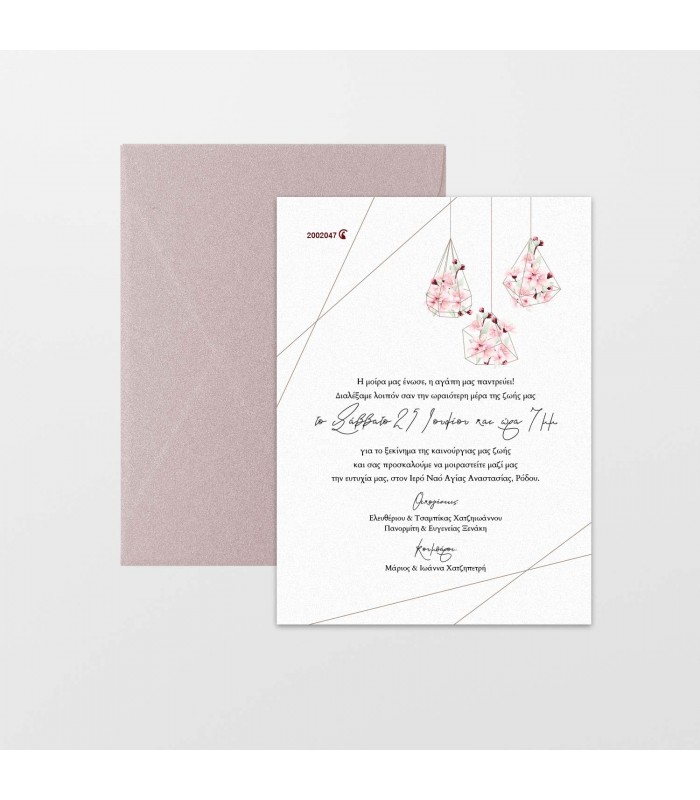Προσκλητήριο γάμου, η κάρτα του προσκλητηρίου είναι διάστασης 19x14cm. Στη τιμή περιλαμβάνεται και ο φάκελος.