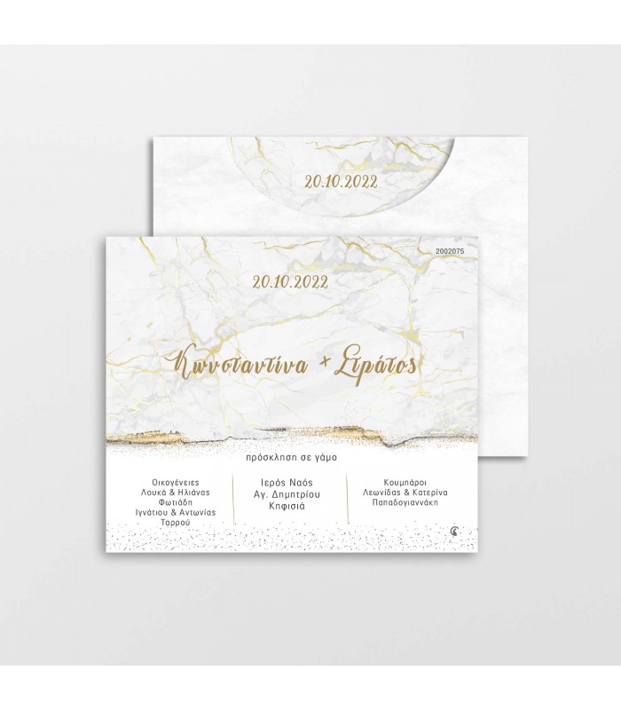Προσκλητήριο γάμου, η κάρτα του προσκλητηρίου είναι διάστασης 19x16cm. Στη τιμή περιλαμβάνεται ο φάκελος και η χρυσοτυπία.