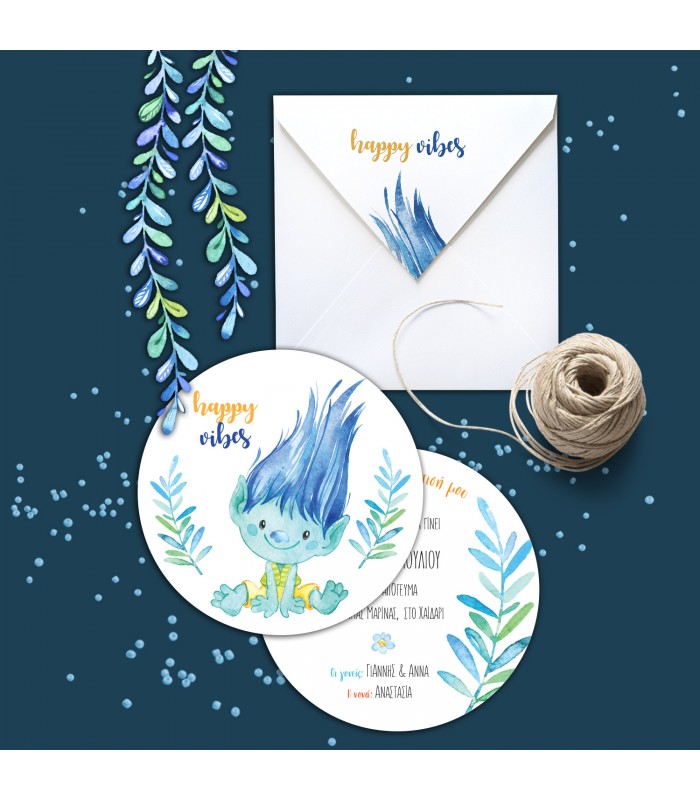 Προσκλητήριο βάπτισης ευχούλης για αγόρι. Η κάρτα του προσκλητηρίου είναι διπλής όψεως, σε διάσταση 19cm. Στη τιμή περιλαμβάνεται και ο φάκελος.