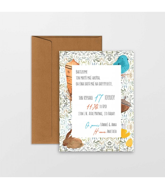 Προσκλητήριο βάπτισης αλεπουδάκι για αγόρι. Η κάρτα του προσκλητηρίου είναι διπλής όψεως και έχει διάσταση 19Χ14cm. Στη τιμή περιλαμβάνεται και ο φάκελος.
