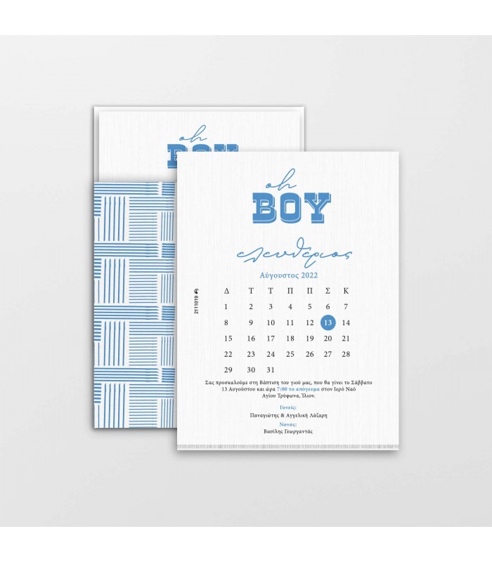 Προσκλητήριο βάπτισης για αγόρι. Η κάρτα του προσκλητηρίου έχει διάσταση 20Χ15cm. Στη τιμή περιλαμβάνεται και ο φάκελος.