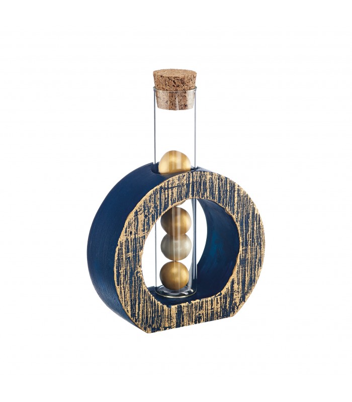 Μπομπονιέρα για γάμο, κεραμικός κύκλος με τρύπα γυάλινο σωλήνα με φελλό διάστασης 12cm. Η μπομπονιέρα περιλαμβάνει 5 κουφέτα Χατζηγιαννάκη και κορδέλες. Η μπομπονιέρα έχει διάσταση 9.5Χ3.5Χ10cm. Ελάχιστη παραγγελία 30 τεμάχια