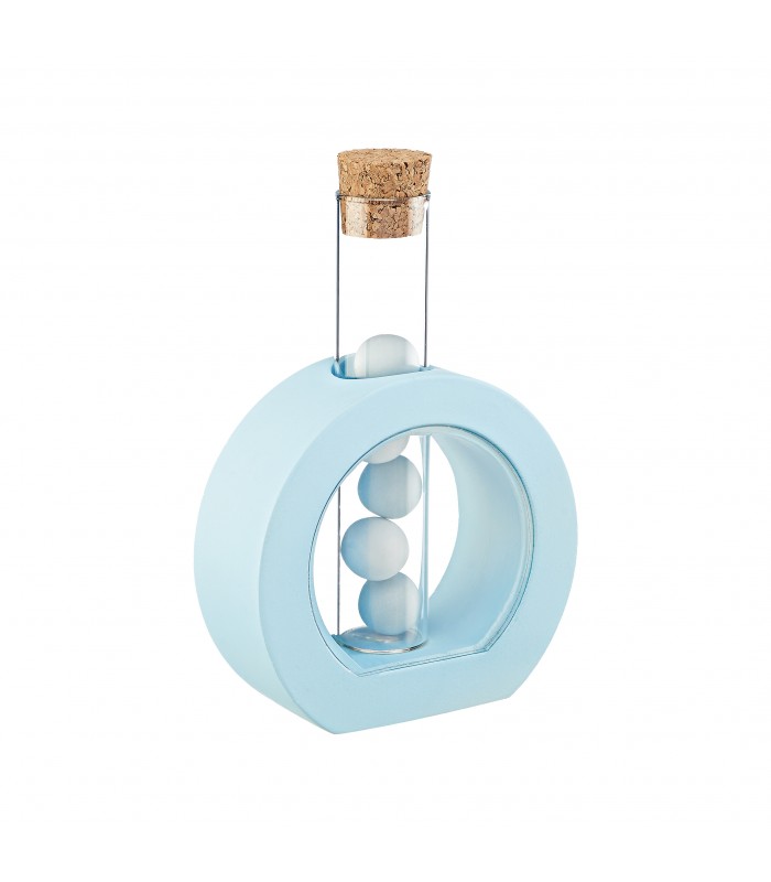 Μπομπονιέρα για γάμο, κεραμικός κύκλος με τρύπα γυάλινο σωλήνα με φελλό διάστασης 12cm. Η μπομπονιέρα περιλαμβάνει 5 κουφέτα Χατζηγιαννάκη και κορδέλες. Η μπομπονιέρα έχει διάσταση 9.5Χ3.5Χ10cm. Ελάχιστη παραγγελία 30 τεμάχια