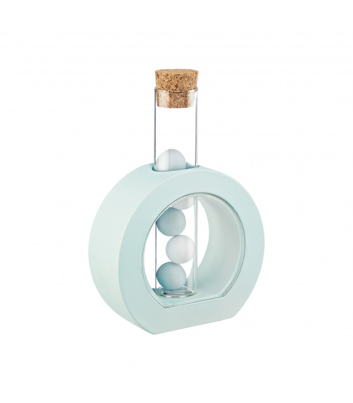 Μπομπονιέρα για γάμο, κεραμικός κύκλος με τρύπα γυάλινο σωλήνα με φελλό διάστασης 12cm. Η μπομπονιέρα περιλαμβάνει 5 κουφέτα Χατζηγιαννάκη και κορδέλες. Η μπομπονιέρα έχει διάσταση 9.5Χ3.5Χ10cm. Ελάχιστη παραγγελία 30 τεμάχια