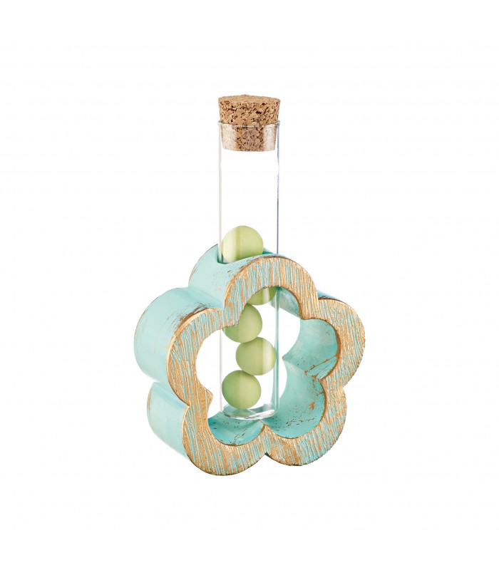 Μπομπονιέρα λουλούδι, κεραμικό με τρύπα γυάλινο σωλήνα με φελλό διάστασης 12cm. Η μπομπονιέρα περιλαμβάνει 5 κουφέτα Χατζηγιαννάκη και κορδέλες. Η μπομπονιέρα έχει διάσταση 8.5Χ3.5Χ8.5cm. Ελάχιστη παραγγελία 30 τεμάχια