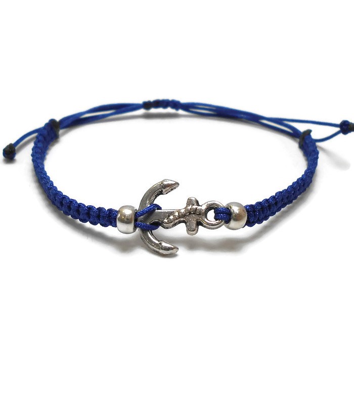 Βραχιόλι αντρικό άγκυρα με μπλε μακραμέ πλέξη