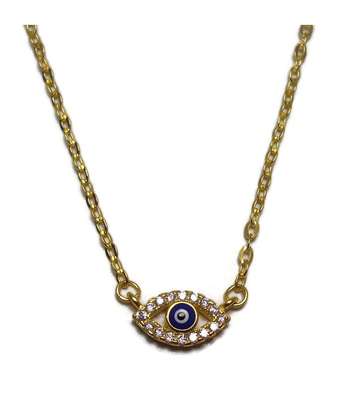 Επιχρυσωμένο κολιέ μάτι από ασήμι 925 με λευκές πέτρες ζιργκόν και σμάλτο στο κέντρο σε αλυσίδα διάστασης 40-45cm.
