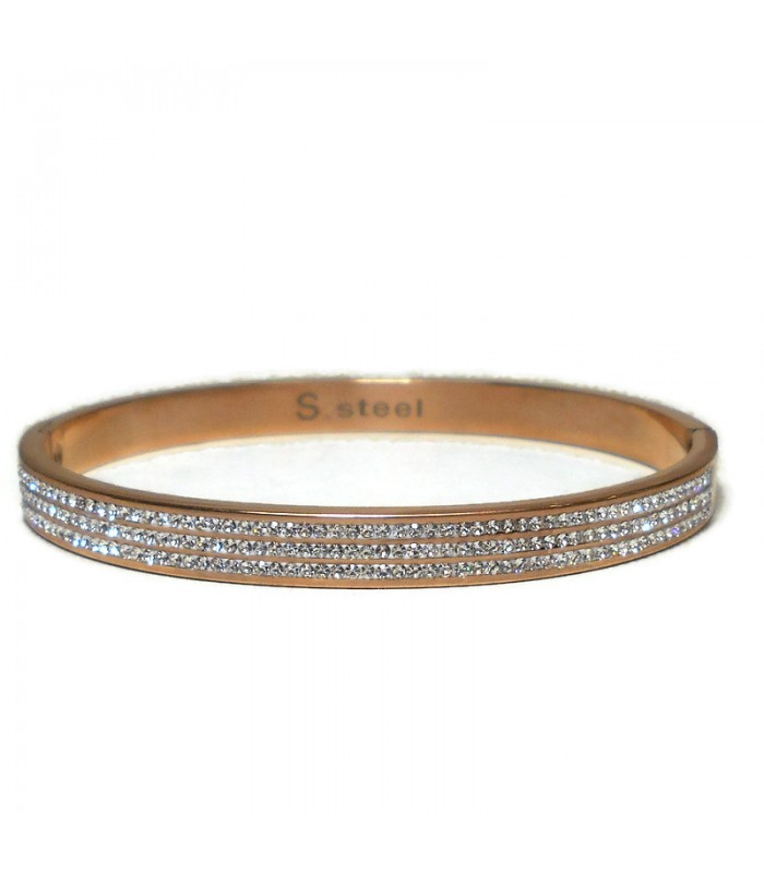 Χειροπέδα με ζιργκόν από ανοξείδωτο ροζ χρυσό ατσάλι. Δεν μαυρίζουν και δεν προκαλούν αλλεργίες.