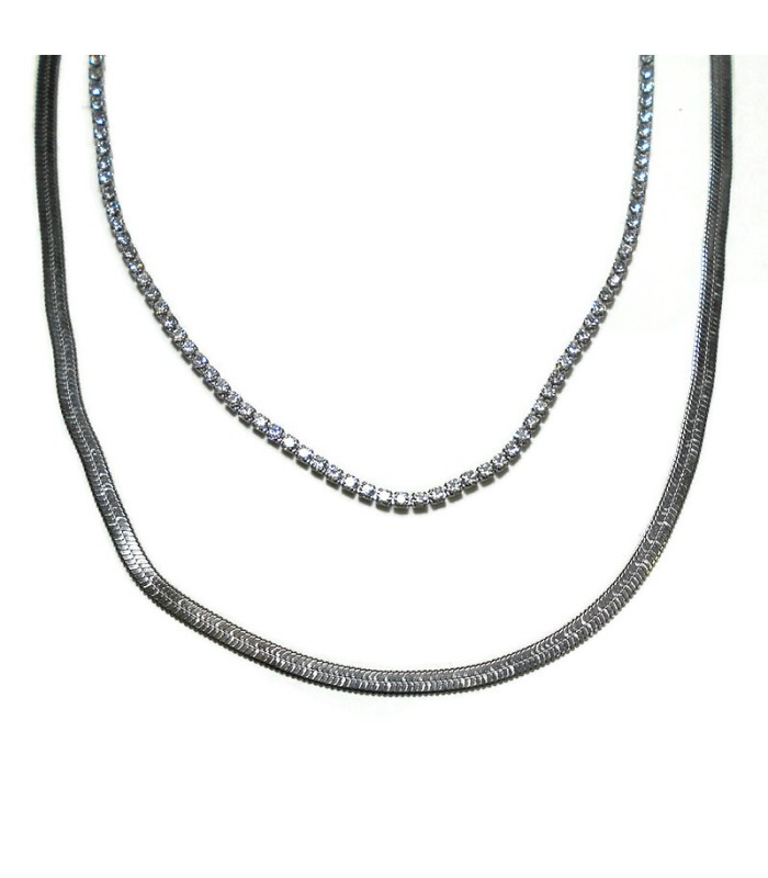 Κολιέ διπλό με πέτρες ζιργκόν και φίδι αλυσίδα από ανοξείδωτο ατσάλι, σε αλυσίδα 40-45 cm. Δεν μαυρίζουν και δεν προκαλούν αλλεργίες.