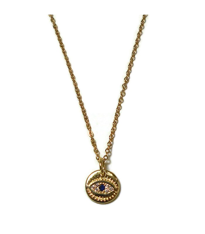 Κολιέ μάτι με πέτρες ζιργκόν από ανοξείδωτο επιχρυσωμένο ατσάλι, σε αλυσίδα 40-45 cm. Δεν μαυρίζουν και δεν προκαλούν αλλεργίες.