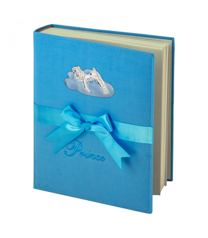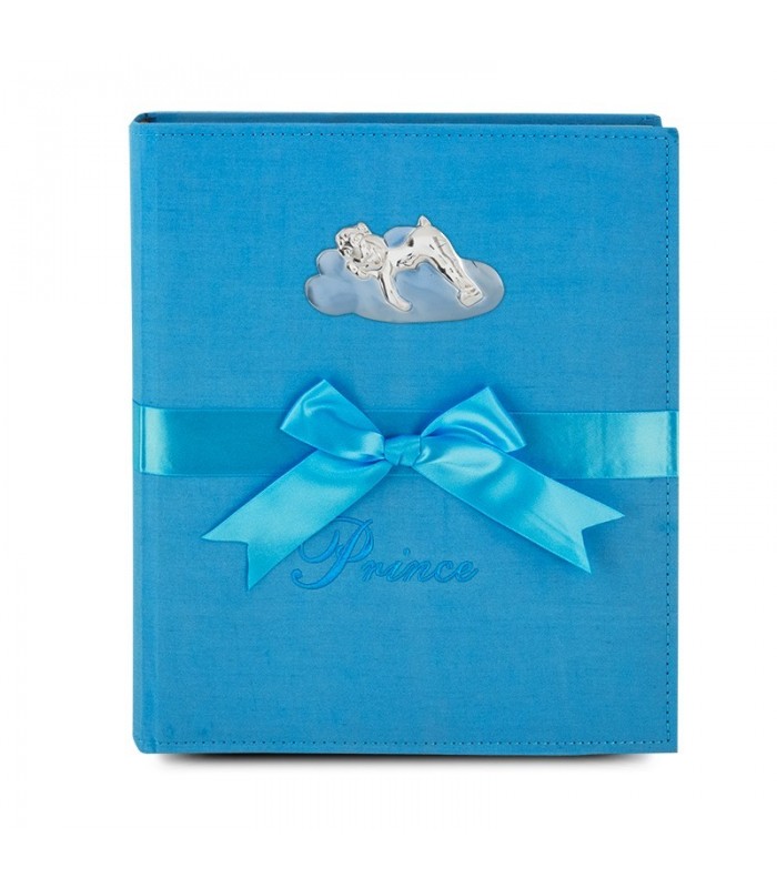 Παιδικό άλμπουμ από ύφασμα υψηλής ποιότητας σε διάσταση 25x30, αποτελείται από 30 φυλλα ριζόχαρτου και ασημένιο διακοσμητικό κατασκευασμένο με επίστρωση άργυρου 950° επί συνθετικού η μεταλλικού υποστρώματος.Εχει υποστεί ειδική επεξεργασία για να παραμένει αναλλοίωτο στο πέρασμα του χρόνου