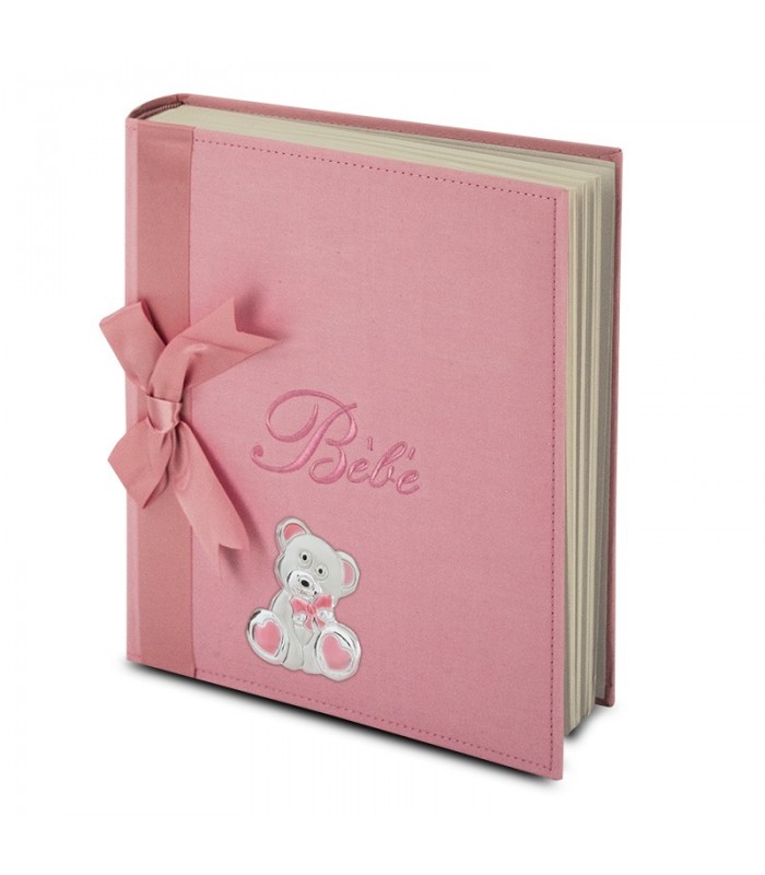 Παιδικό άλμπουμ από ύφασμα υψηλής ποιότητας σε διάσταση 25x30, αποτελείται από 30 φυλλα ριζόχαρτου και ασημένιο διακοσμητικό κατασκευασμένο με επίστρωση άργυρου 950° επί συνθετικού η μεταλλικού υποστρώματος. Έχει υποστεί ειδική επεξεργασία για να παραμένει αναλλοίωτο στο πέρασμα του χρόνου